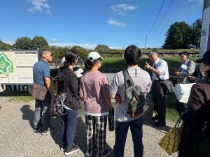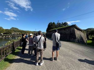 参加者の方々は,五稜郭の土手に上り,現在の景色と箱館戦争を描いた絵とを見比べたり,奉行所内では役人の序列によって部屋や座る位置が違うといったことなどを学びました。