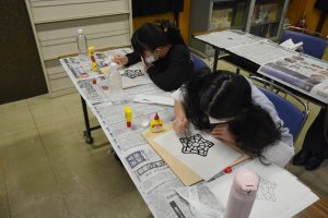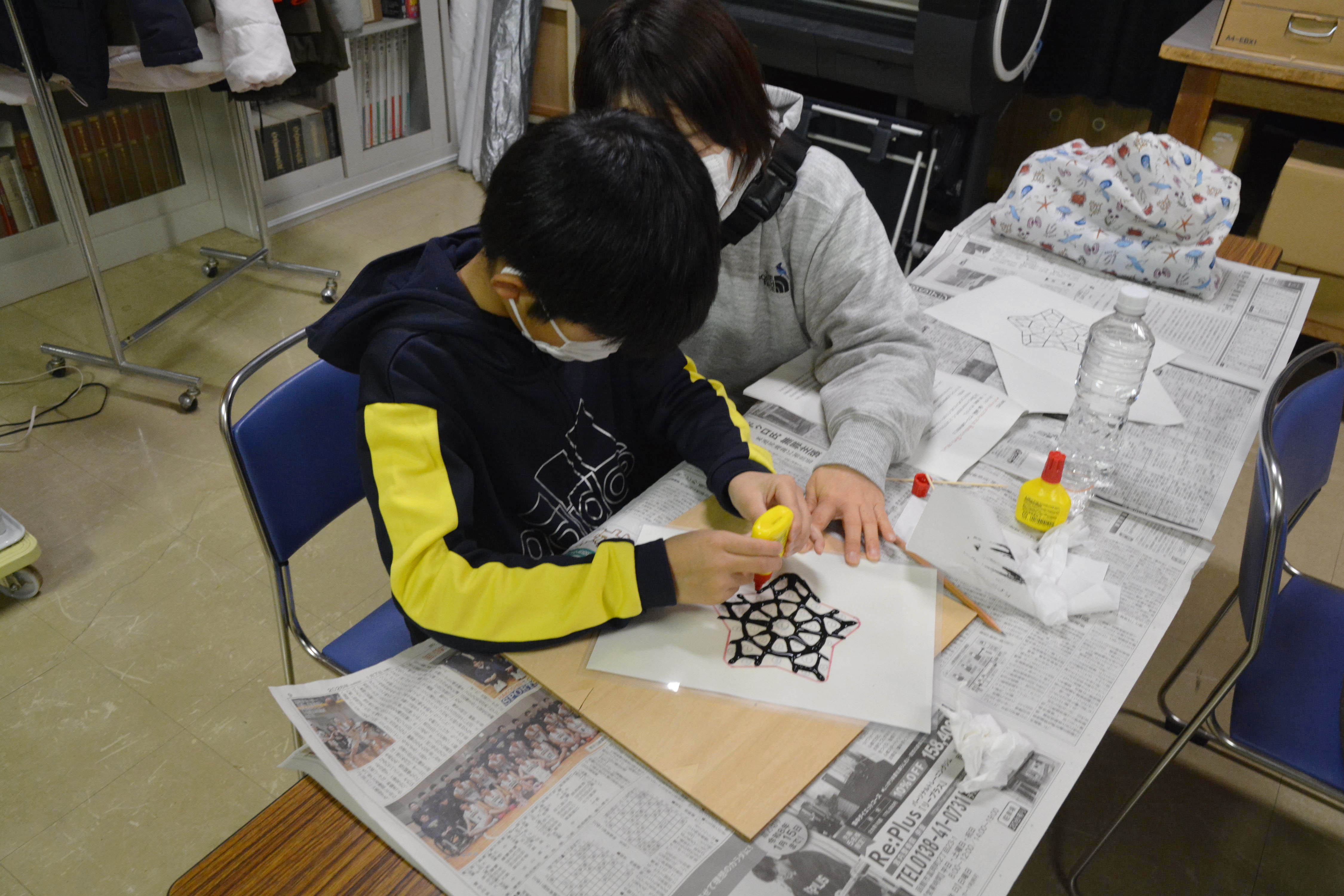 【開催しました】冬休み自由研究「ボンドでステンドグラス工作」 令和8年1月9日(金)に,小学生向けの冬休み講座「ボンドでステンドグラス工作」を開催しました。乾くと色が透明になるという木工用ボンドの性質を利用し,墨汁と絵の具で着色したボンド液で,当館所蔵の市指定文化財「五稜郭初度設計図」をデザインした,ステンドグラス風の作品を制作しました。